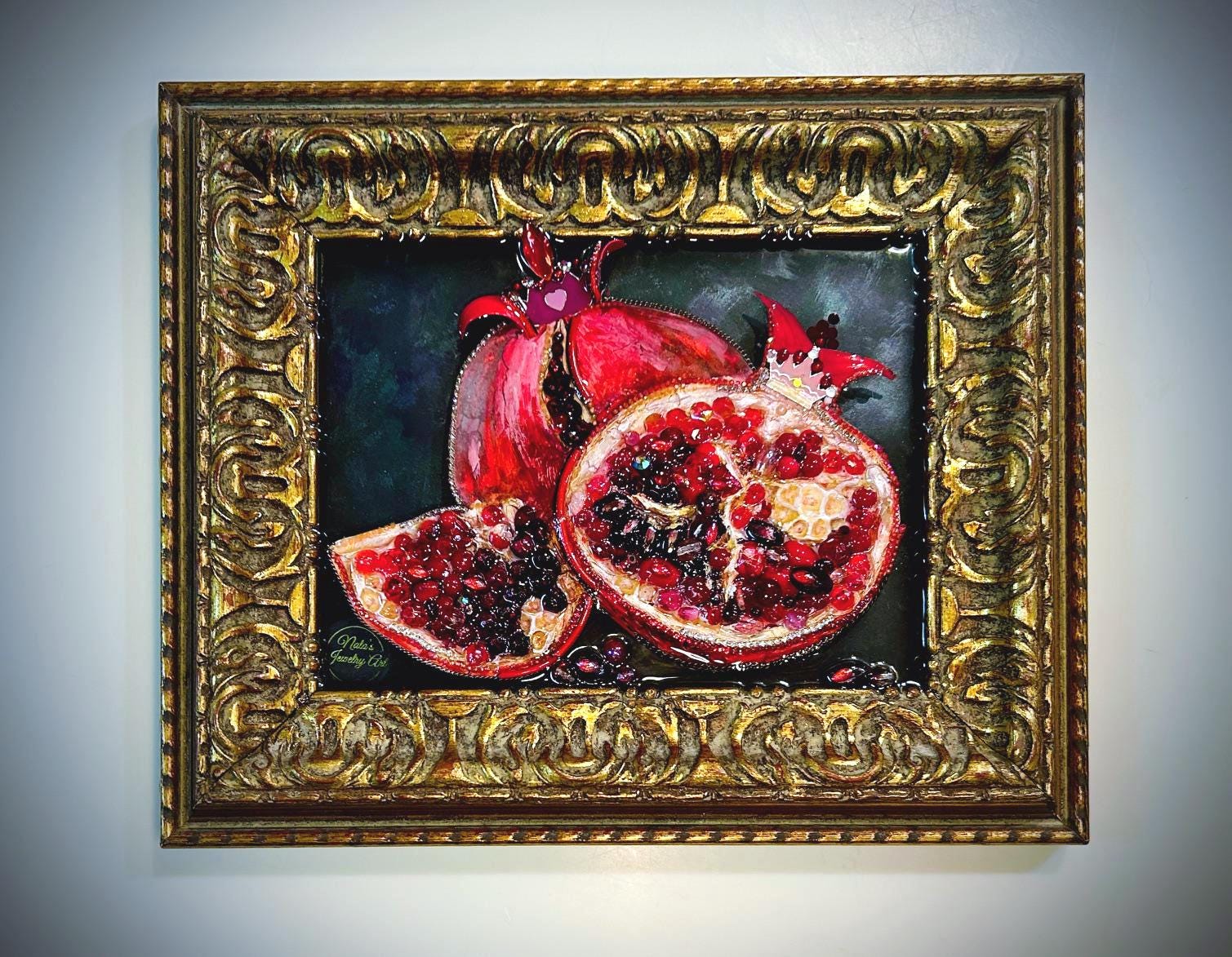 In my art use contemporary and vintage jewelry. As with most old jewelry, you can expect some minor character wear such as an occasional missing or dull stones, but nothing that will detract from the overall beauty of the finished picture.